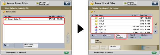 Press (Main Menu) → [Access Stored Files] → [Memory Media].