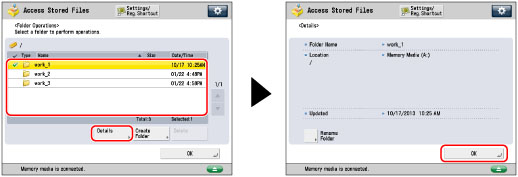 You can check the detailed information (folder name, location, date modified, etc.) for folders in memory media.