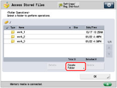 Select the desired memory media → select the desired folder level → press [Folder Operations].