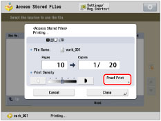 When proof printing is complete, the machine automatically resumes the job. If you need to adjust the settings, press [Cancel] or (Stop) and then make a necessary adjustment. |