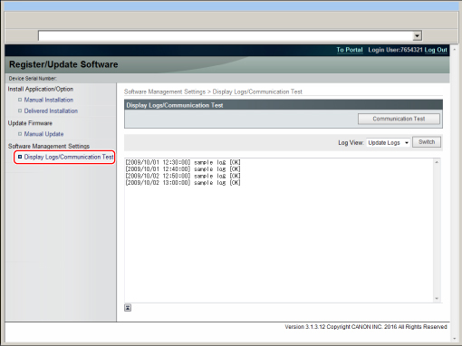 Press [Software Management Settings] → [Select Log Display] → [Display Update Logs].