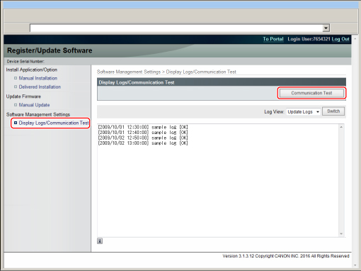 From the portal page of the Remote UI, click [Settings/Registration] → [License/Other] → [Register/Update Software].