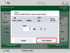 We recommend you to read the following topics before using the Fax function: Main Power and Energy Saver key (See "Main Power and Energy Saver Key.") Entering Characters from the Touch Panel Display (See "Entering Characters from the Touch Panel Display.") Routine Maintenance (See "Routine Cleaning.") The maximum number of fax jobs from the Fax screen that the machine can handle is 120, including jobs with error codes. However, the actual number of send jobs from the Fax screen that the machine can handle may be less than 120, depending on the following conditions: When multiple documents are being sent at the same time When large documents are being sent When a large amount of memory is being used for the Mail Boxes and Fax/I-Fax Inbox You can print a report that contains the results of all send jobs. (See "Fax TX Report" and "Fax Activity Report.") If you are using a login service, it is necessary to log in to the machine with the appropriate procedure for the login service. If you are using Department ID Management with the Copy Card Reader-F1, see "Copy Card Reader-F1." If you are using Department ID Management, see "Entering the Department ID and PIN." For instructions on setting the SSO-H login service, see "Login Service." For instructions on canceling a send job, see "Canceling a Job." |