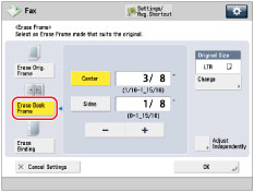 You can set the Erase Book Frame mode only for the original paper sizes shown on the touch panel display. |