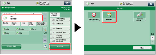 Specify the destination → press [Options] → [Preview].