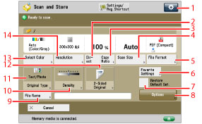 6 | [Favorite Settings] Press to recall scan settings or register frequently used settings in the Favorite Settings. |