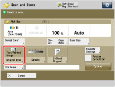 If you scan an original containing halftones, such as a printed photo, the moiré effect (a shimmering, wavy pattern) may occur. If this happens, you can lessen the effect by using [Sharpness]. (See "Adjusting the Image Sharpness.")[Map], [Photo Printout], [Printed Image], [Text/Printed Image], [Text/Photo Printout], and [Color Copy Original] can be selected only when a mail box is selected. [Text/Photo] and [Photo] can be selected only when Memory Media is selected. |