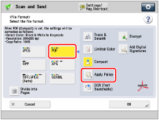 Select [PDF] → press [Apply Policy].