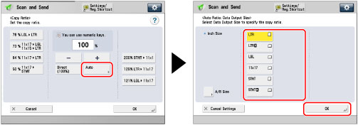 You can automatically enlarge or reduce an original to a specified paper size. The same zoom ratio is used for the horizontal and vertical axes.