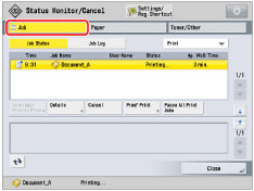 Press [Job Status] → select [Print] from the drop-down list.