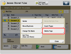 You can add, delete, move, duplicate, merge, and insert/delete pages for files stored in a mail box.