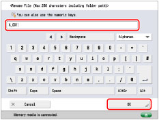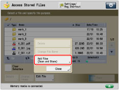 To store the scanned images in the memory media, set <Use Scan Function> in [Use Scan/Print Function] to 'On'. (See "Memory Media Settings.") |