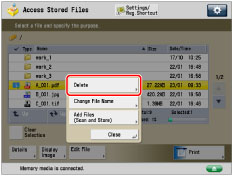 Select the desired memory media → select the directory where the file you want to delete is stored.