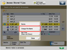 If you select multiple files and press [Change File Name], the selected (highlighted) file becomes the file whose title is changed. |