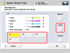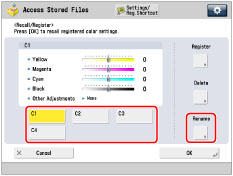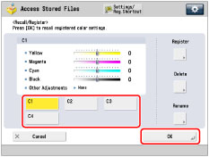 Select a key ([C1] to [C4]) for storing the color balance settings → press [Register].