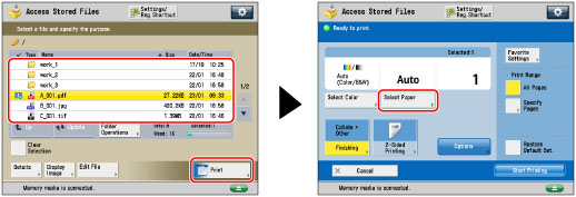 Select the desired file → press [Print] → [Select Paper].