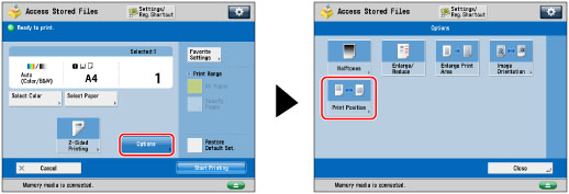 This mode is only available for printing files stored in the memory media. You can use this mode only when printing JPEG or TIFF files. |