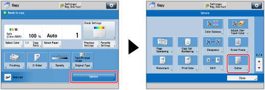 [Gutter] shifts the entire original image by the designated width. Therefore, an original whose image extends all the way to the edges of the sheet may be partially cut off on the copy.