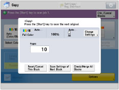 If you want to change the scan settings and scan another batch of originals, press [Scan Settings of Next Block] and repeat the procedure from step 4.