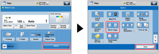 Press [Options] → [Mirror Image] → [Close].