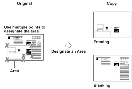 [Blanking]: | Copy the original by blanking out the contents of the designated area. |