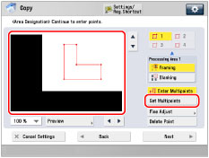 If you select [Enter Multipoints], only one area can be designated at a time. An area that is designated by selecting [Enter Multipoints], cannot be modified using - (numeric keys). |