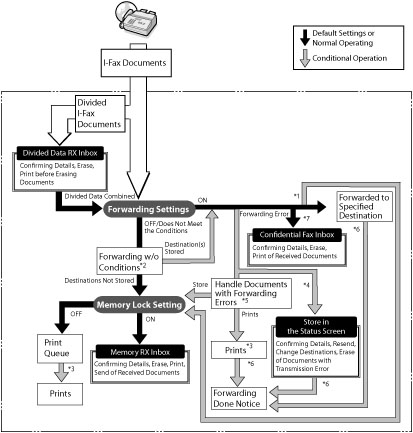 *7 You can store received I-fax files in the Confidential Fax Inbox by specifying it as a forwarding destination. Only received files that match the specified forwarding conditions will be stored in the Confidential Fax Inbox.