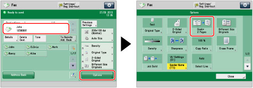 This mode enables you to scan facing pages in a book or bound original and record them onto separate pages.