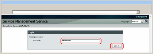This password is to prevent unauthorized operation of the machine. Do not inform anyone other than the administrator of this password. In order to prevent erroneous usage, change the password to one that only the administrator knows (when you begin using it). If you want to change the password, see "Changing the Password." Make sure that you do not forget your password. Otherwise, you will not be able to access SMS. In this case, contact your local authorized Canon dealer. The default password is "MeapSmsLogin" (case sensitive). |