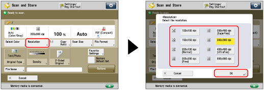 You can specify the resolution at which to scan the original. Scanning at high quality increases the file size, but ensures details are preserved in the final image.