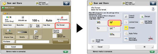 If [Format PDF to PDF/A] in [Function Settings] (Settings/Registration) is set to 'On', [Apply Policy] cannot be set. (See "Formatting PDF Files to PDF/A.") |