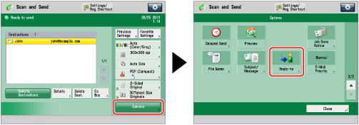 You need to store reply-to addresses in the Local Address Book or a one-touch button beforehand. (See "Storing New Addresses.") |