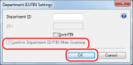 Confirm that [Confirm Department ID/PIN When Scanning] is selected → click [OK].