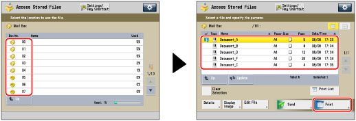 As an example, the procedure for selecting files stored in a mail box is explained in this section.