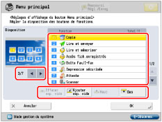 dans la partie supérieure droite de l'écran, l'écran suivant s'affiche. Sélectionner les réglages dans l'écran affiché et régler l'affichage de l'écran Menu principal.