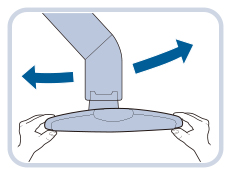 L'angle peut être réglé comme indiqué ci-dessous. Le support du panneau de contrôle peut se rompre en cas de dépassement de la plage de réglage dans une des directions.