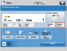 Si les options [Recto verso] et [2 sur 1] sont mémorisées sous Réglages favoris, l'écran ci-dessous s'affiche.