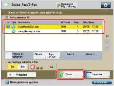 → [Boîte Fax/I-Fax] → [Boîte mémoire RX].