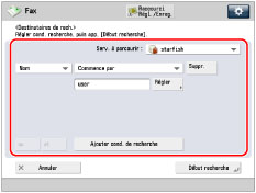Il est possible de définir simultanément jusqu'à quatre critères de recherche. Si au moins trois critères de recherche sont définis, il est impossible d'utiliser à la fois [ou] et [et]. |