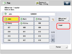 Sélectionner le bouton de composition 1 touche à supprimer → appuyer sur [Suppr.].