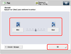 Pour lire nettement le texte et les lignes, le réglage doit être vers [Maxi]. Pour lire des originaux contenant des images imprimées ou autres demi-teintes, le réglage doit être vers [Mini].