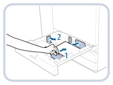 *1 Sens d'alimentation *2 Face d'impression vers le bas Si le rabat se plie ou si un bourrage papier se produit avec les formats de papier personnalisés de 100 x 148 mm à 330,2 x 487,7 mm, Pour plus d'informations, consulter l'ide en ligne. (Voir "Affichage de l'aide".(Windows) ou "Affichage de l'aide". (Mac OS).) À la copie sur enveloppes, tourner l'original avant de le charger. Si vous tournez ISO-C5 de 90 degrés, définir 229 x 162 mm en tant que format personnalisé avant de réaliser une impression. |