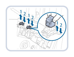 | 1. Extraire le boîtier d'agrafes vide, en le tenant par les côtés gauche et droit. |