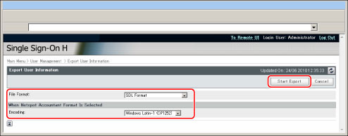 [SDL Format] | Exporter les données utilisateur créées dans le format de fichier utilisé pour SDL et le système Local Device Authentication de SSO-H (extension de fichier : "ldif") |