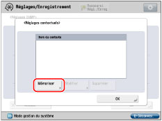 Appuyer sur [Réglages contextuels] → sélectionner le contexte pour lequel modifier le nom → appuyer sur [Modifier].