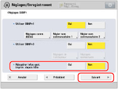 Appuyer sur [Oui] pour <Utiliser SNMPv3> → [Réglages de l'utilisateur] → [Mémoriser].