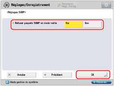 Définir [Refuser paquets SNMP en mode veille] → appuyer sur [OK].