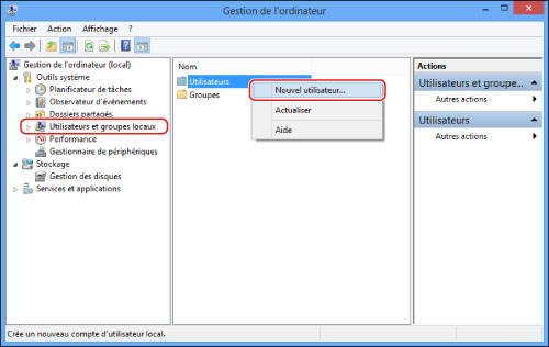 Cliquer avec le bouton droit sur le dossier [Utilisateurs] → cliquer sur [Nouvel utilisateur].
