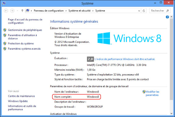 Cliquer sur l'onglet [Nom de l'ordinateur] → confirmer [Nom complet de l'ordinateur] → cliquer sur [Annuler].
