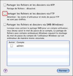 Sélectionner [Partager les fichiers et les dossiers via FTP].